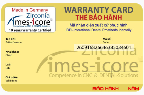 + Mỗi cơ sở nha khoa hay Labo phục hình đều có thể cấp Thẻ IDPI – hay còn gọi là Thẻ Xác Thực Xuất Xứ như là một dạng Thẻ Bảo Hành của riêng mình.
